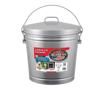 Behrens 6110 Locking Lid Container Galvanized Metal Pet Feed Storage 10 Gallon Bin Trash Can
